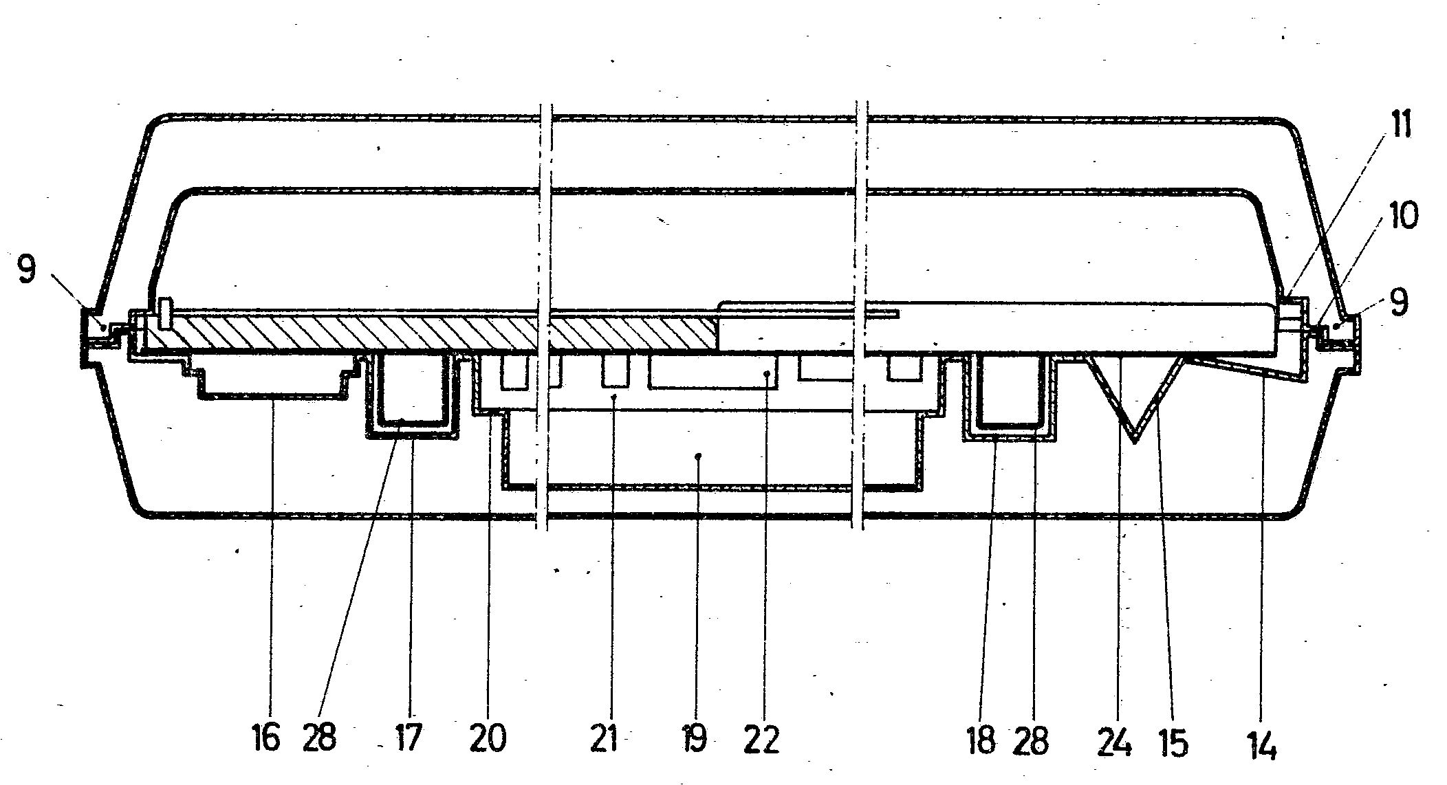 Towards the right-hand side of the tray, there is a subtle wedge-shaped depression that allows the drawing board to be more easily removed by pushing down on its right edge, causing the other side to lift up. This detail can be seen in Faber-Castell’s patent drawings.