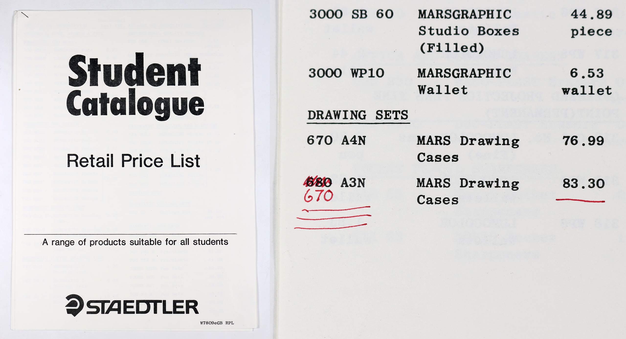 Just to complete the picture, in the back of the student catalogue is a brochure for the newly released Mars Technico 555 compass, offering an upgrade path to the longstanding Superbow.